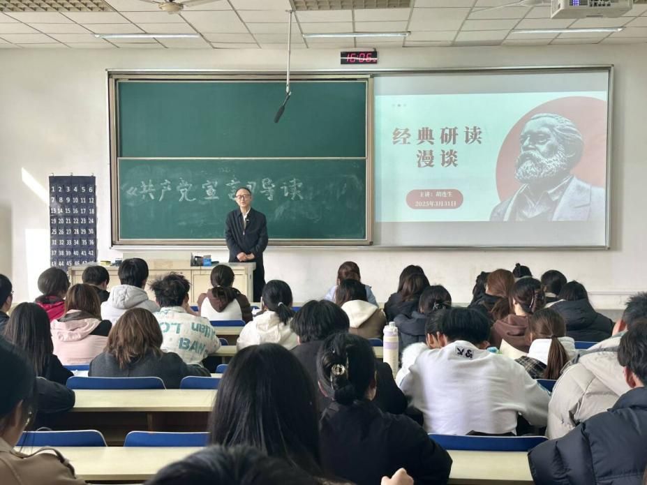 在仙林校区德业楼116教室举办经典研读漫谈活动。校“五老”讲师团成员、胡连生教授受邀作“《共产党宣言》导读”专题讲座,学院各年级学生代表参加。