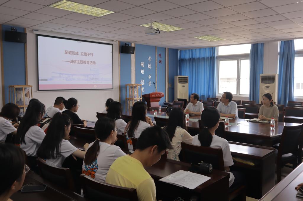 殷建新书记以“至诚则成,立信于行”为主题,为毕业生党员、家庭经济困难学生讲授“最后一课”。他表示,作为新时代大学生,应坚定理想信念,坚守诚信品质,要诚信求知、诚信贷款、诚信为人,同时还要知感恩,饮水思源。特别作为学生党员,要时刻牢记自己的政治身份,不忘母校嘱托,珍惜韶华、奋发有为,勇担时代使命,争做奋斗青年。