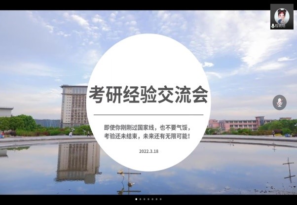 为帮助学院2022届考研学生进一步理清复试和调剂备战思路,有效应对即将到来的研究生招生线上复试,增强他们复试备考信心,3月18日晚,学院研究生党支部通过“腾讯会议”在线举办了考研复试及调剂经验分享交流会。学院研究生党支部成员、研究生党员代表及全体2022届考研学子参加了分享交流会。会议由研究生党支部副书记刘畅主持。