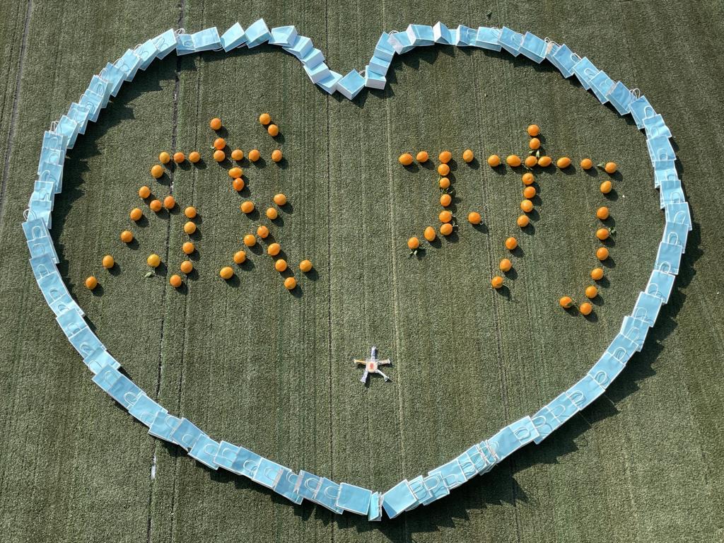 学弟学妹们摆出暖心图案为考研的学长学姐加油