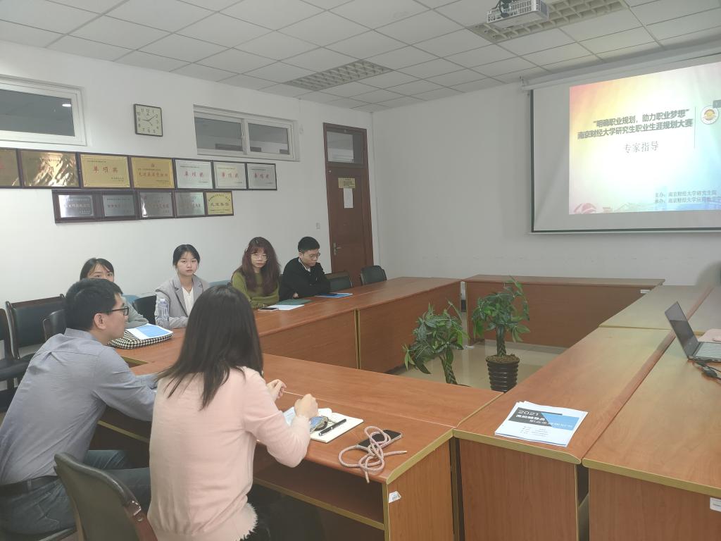 10月14日上午,应学院邀请,校后勤基建处副处长王成杰老师在仙林校区德业楼534室为参加研究生职业生涯规划大赛决赛的同学进行指导,会议由院党总支副书记布丹丹老师主持。