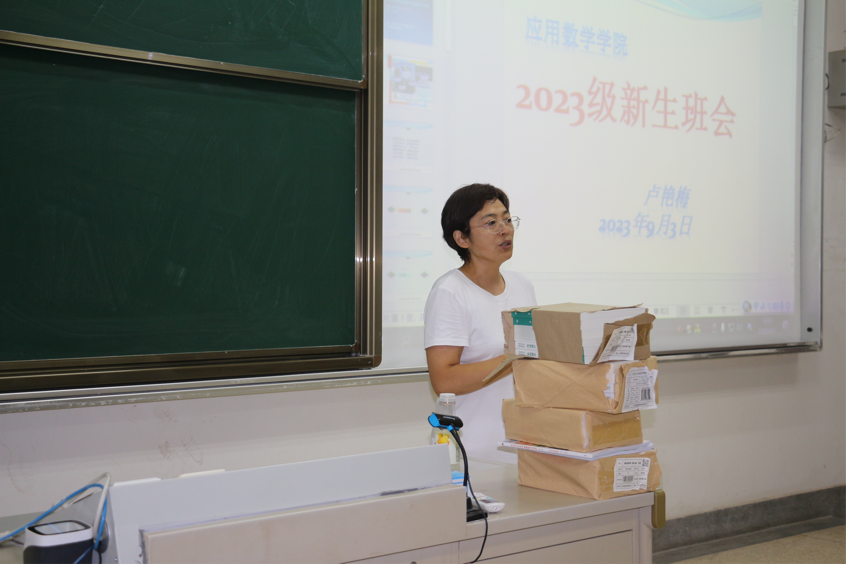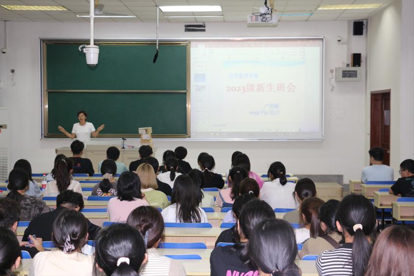 在仙林校区德业楼103紧接着召开2023级新生班会。会议由辅导员卢艳梅主持,全体2023级新生参加。