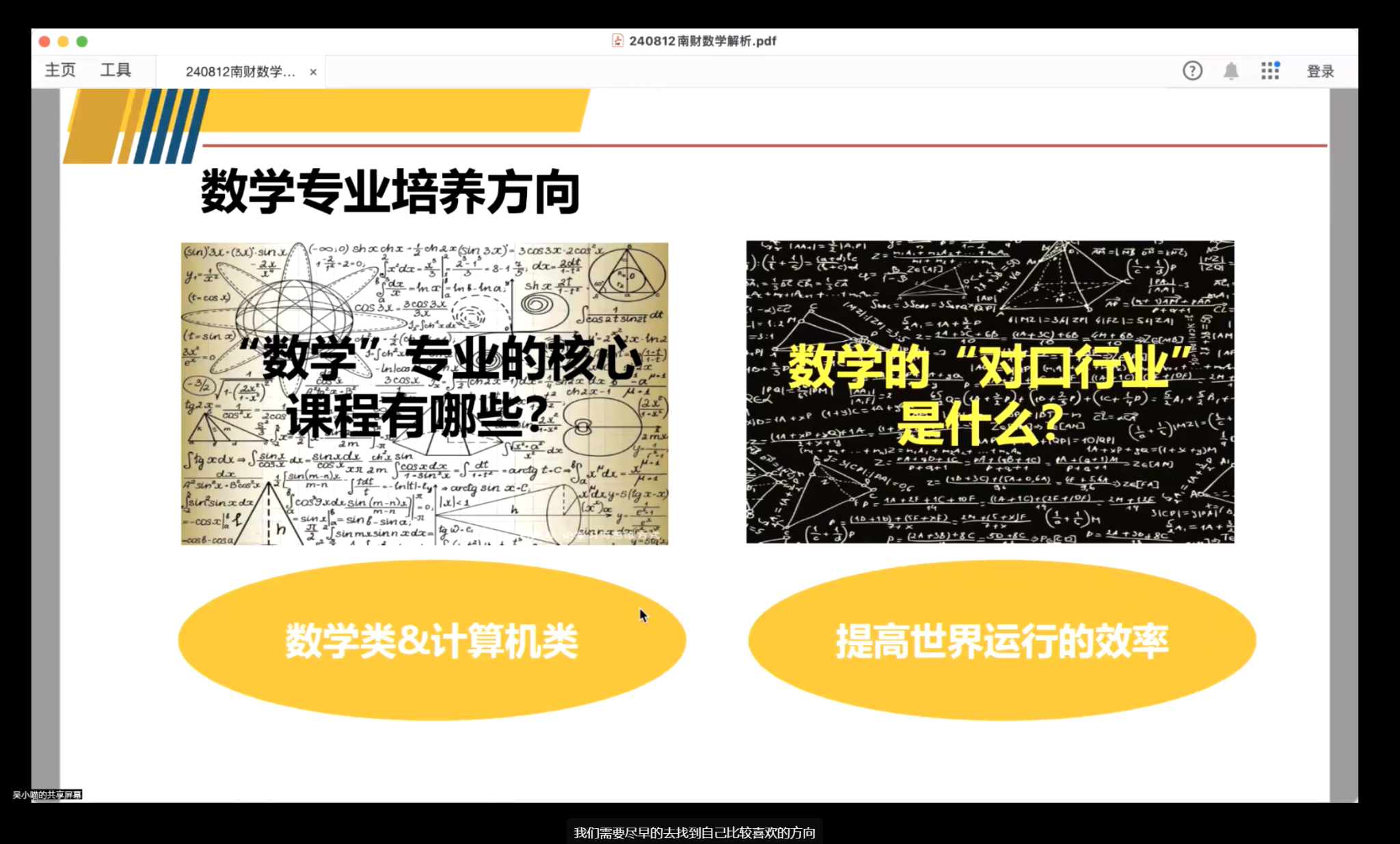 讲座从数学专业深度解析、未来职业发展展望、大学阶段规划建议三个方面展开。通过生动的案例为同学们解析了数学专业在当前及未来社会的广泛应用领域,包括金融科技、大数据分析、人工智能、生物医药等前沿行业。这不仅引发了同学们的积极思考和热烈讨论,也巧妙地将大家引入了未来职业规划的话题。吴老师也为新生们提出了一些实用的大学阶段规划建议,她从人力需求对比人力供给角度,解释了一些应届毕业生求职就业的隐性标准。同时从证书、实习、商赛等方面为同学们大学的四年生活做了一个大致的规划建议,希望同学们能从中学会合理规划自己丰富多彩的大学四年生活。同学们纷纷表示受益匪浅,不仅对本专业的未来发展有了更加清晰的认识,同时也对自己的职业规划有了更加明确的方向,对即将开始的大学生活充满期待。