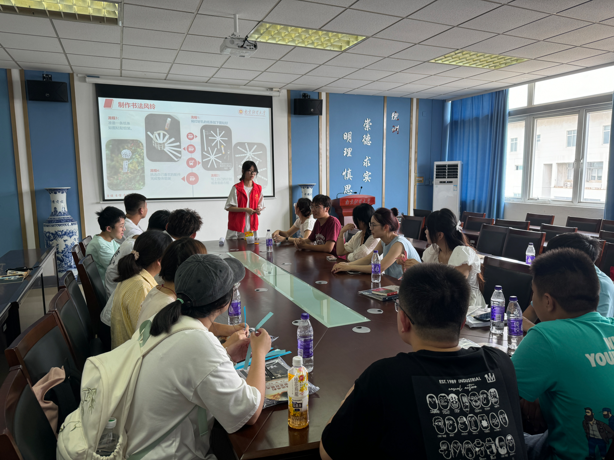 活动现场,研究生“小导师”与新生第一次见面,学习方法、生活细节、参加活动……双方相谈甚欢。研究生“小导师”也就学习方法进行了经验分享,新生则提出自己的问题、分享感悟,并表示踏实努力,为自己的未来拼搏出一份光彩。活动中,共同制作书法风铃活动再一次拉近了新生和“小导师”之间的距离,新生们在风铃挂着的纸条上写下了自己的座右铭和小目标,叮铛铃声,也开始了同学们精彩丰富的大学生活。