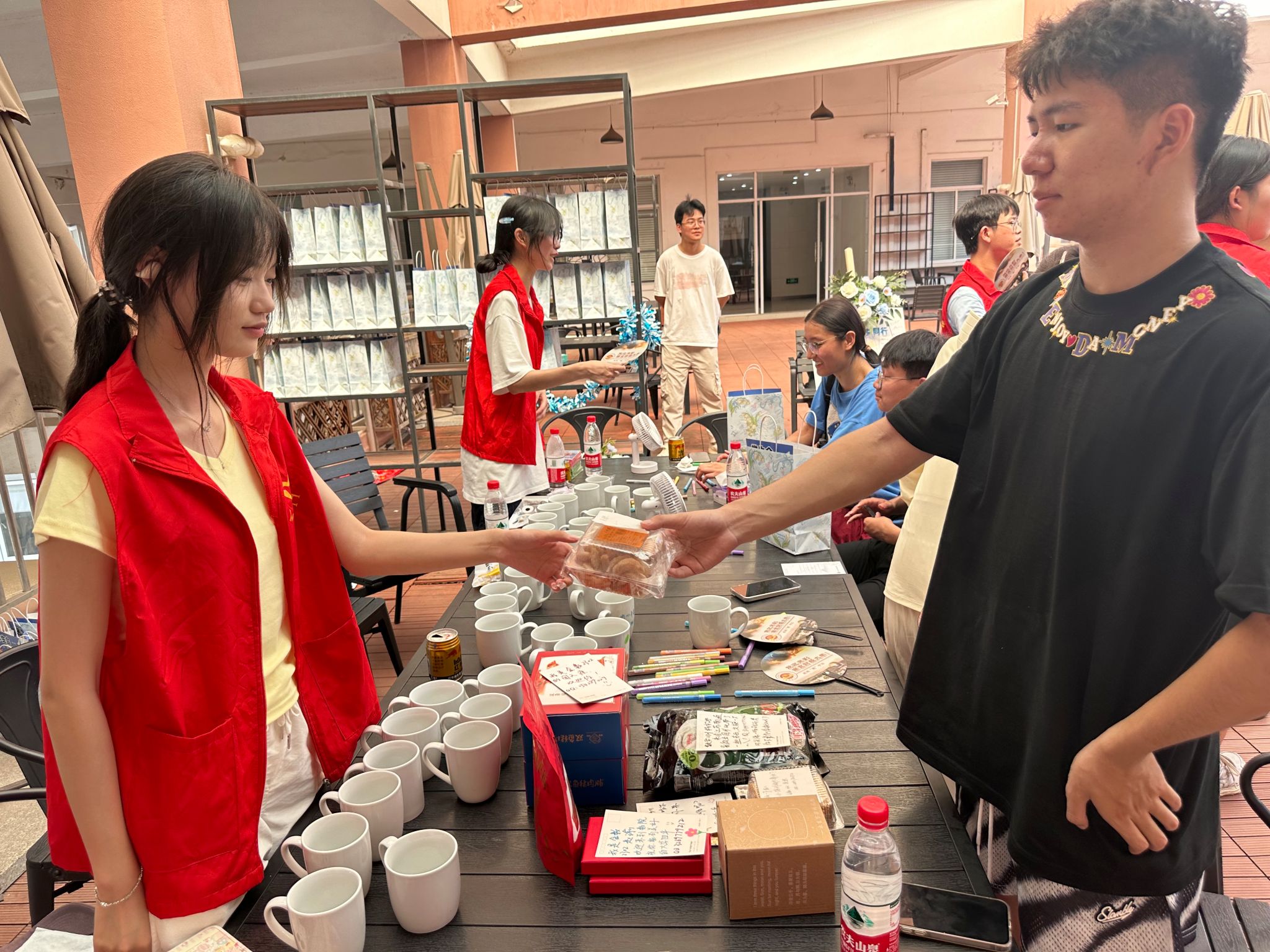 在德业楼六楼,学院为新生们准备了一场别开生面的陶瓷杯绘画活动,由学生和家长共同创作,绘制属于自己幸福加“杯”。活动现场,有家长在杯子上为新生写下祝福、新生则写下自己的座右铭;有新生和家长共同自由创作,绘制自己喜爱的图案......杯子由新生和家长共同创作并可以在大学阶段一直使用,寓意着在孩子的成长道路上,学校和家庭将携手共进,共同为孩子创造美好未来,也希望每一位新生都能感受到来自学校和家庭的爱,谨记初心,砥砺前进。同时每一位参与活动的新生都可以领取一份礼物,有数院标志的小圆扇、精美的香囊和以及印有南财风景的反转胶片等。这些别具特色的礼品,既体现了学院的用心,也增强了新生们的归属感。
