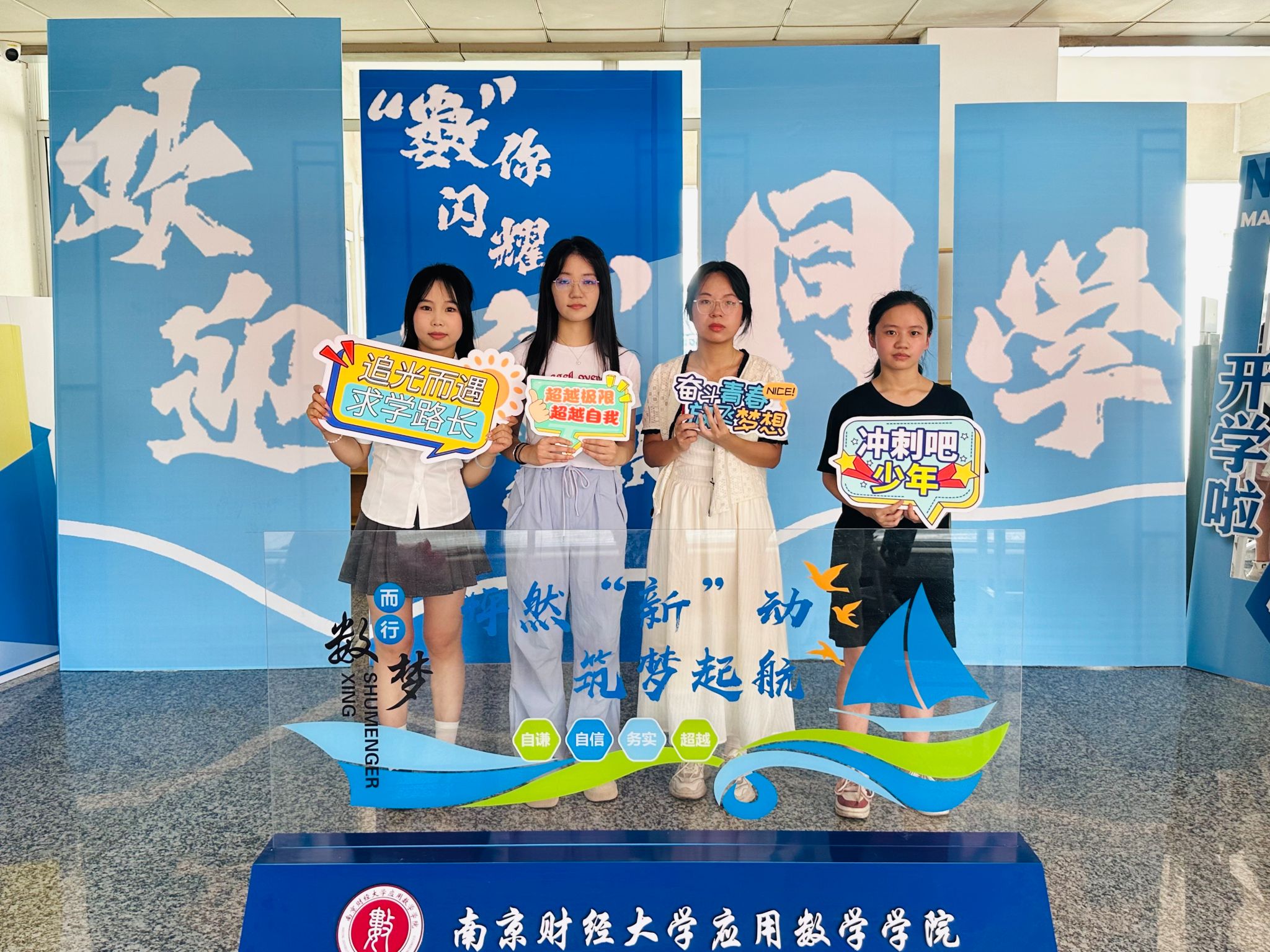 “同学,欢迎加入数院大家庭”“同学,请跟我走,我带你到五楼报到”......德业楼前志愿者们手持欢迎牌,热情地引导新生和家长们。电梯口处,“数”你闪耀 “新"欣向荣大型展板和“我和录取通知书合照”活动展板吸引了众多新生和新生家长的目光。“太温馨啦”,新生们纷纷在此驻足合影,记录这难忘的时刻。报到时,每一位小“萌新”都收到了一份特别的“欢迎礼包”,其中包含写满祝福的光栅卡、学长学姐亲笔书写的书签,同时抽取了属于明星ai换脸