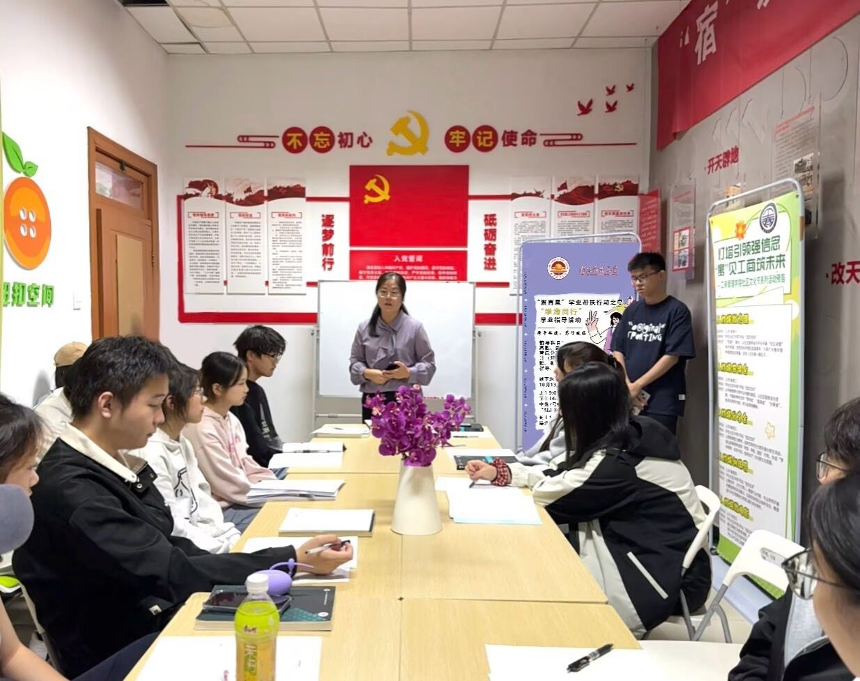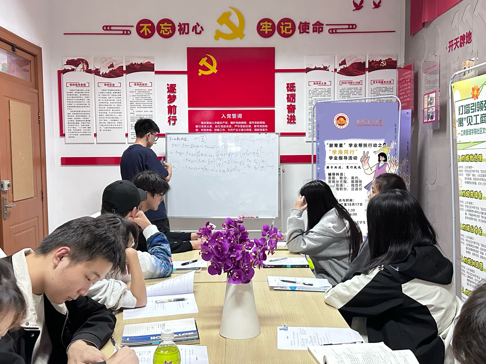 在仙林校区7号宿管站纽扣空间一站式学生社区举办“学海同行”拔高题研习辅导活动。活动由江宇森同学主讲,学院党委副书记孙晓飞主持,“德业”工作室承办,学院各年级学生代表参加。