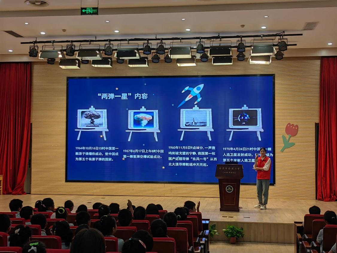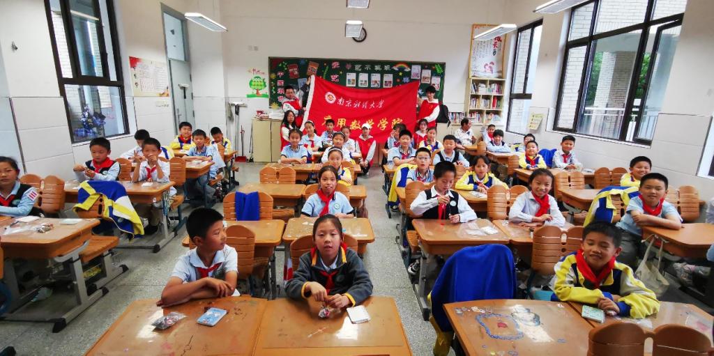 “熠星独行,‘核’护万家”暑期“三下乡”社会实践志愿宣讲团分别前往南邮小学、金陵小学、摄山星城小学开展“两弹一星”精神宣讲暨民俗体验活动。学院党总支副书记孙晓飞、办公室主任张文文、团委书记李攻明、全体志愿者以及三所小学部分师生参加宣讲。宣讲由金数2202班张灵凡、钱磊同学主持。
