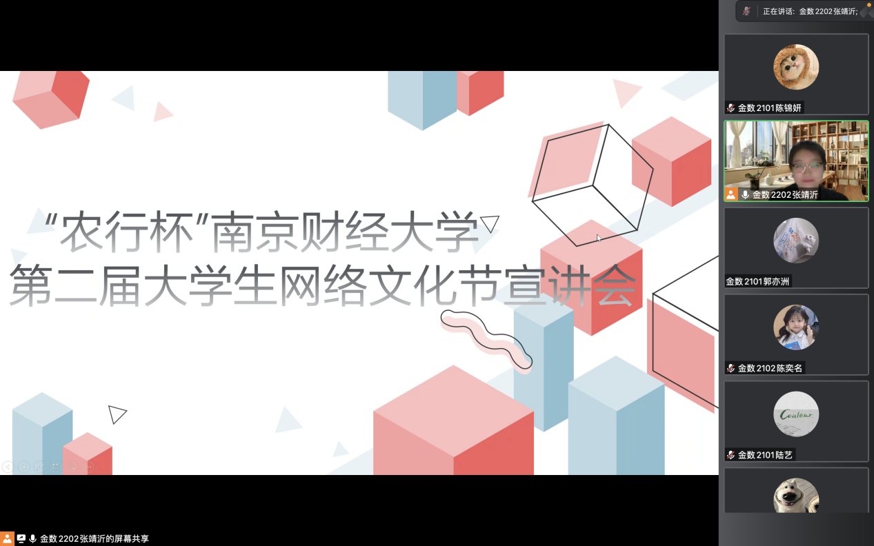金数2001班周晓宇同学作经验分享,她结合具体参赛作品从主题选择、立意确定、素材收集、行文技巧等方面和同学们做了经验分享,鼓励同学们抓住机会,积极参与此次活动。
