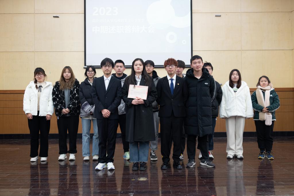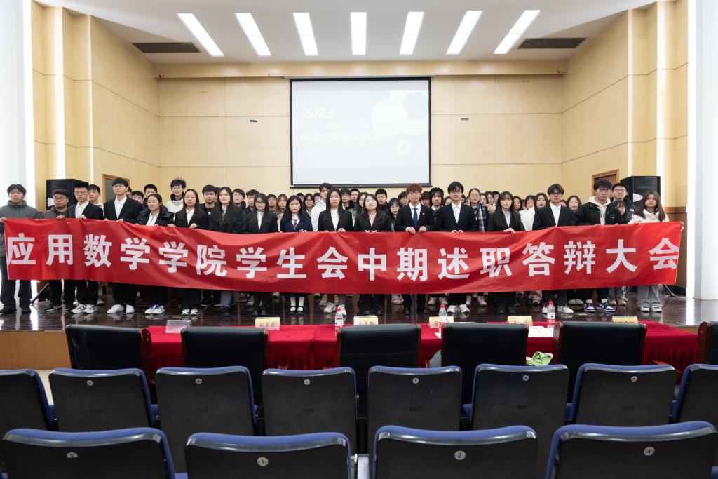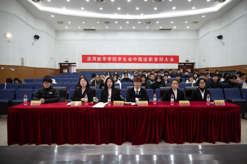 在仙林校区德济楼报告厅召开第二十届学生会中期述职大会。出席本次会议的有院学生会主席团成员、信息工程学院学生会主席黄泽阳、金融学院学生会主席刘奕婷。本次会议由院学生会综合事务中心志愿者左圆艺主持,院学生会全体成员参加。