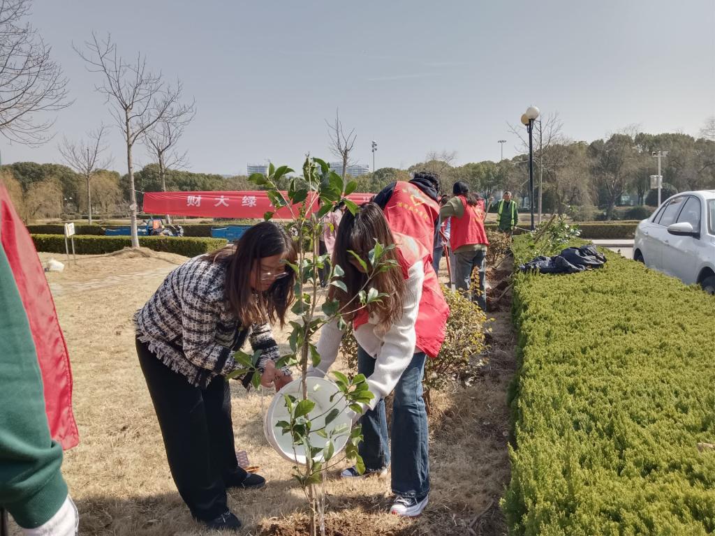 联合后勤基建处依托校共青团工作创新创优项目“‘数’说青春,‘益’路同行志愿服务”项目组织师生志愿者30余人在仙林校区中苑开展“财大绿意,‘数’我添彩”植树节主题志愿活动。