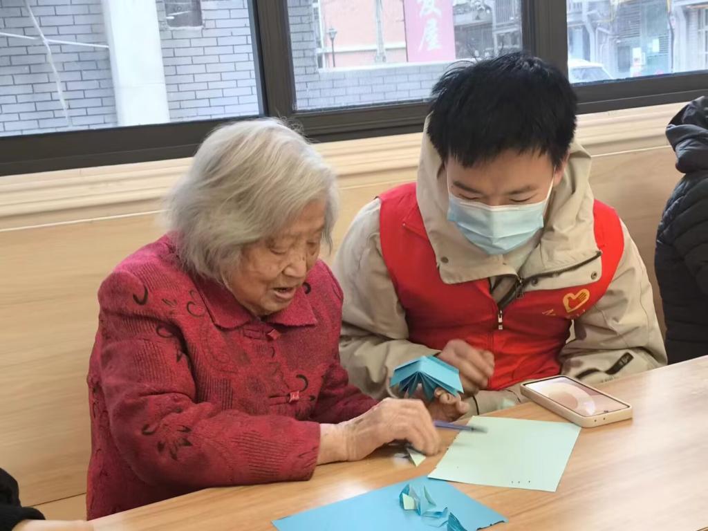 敬老爱老送温暖。志愿者们首先来到南京市爱馨护理院,分小组陪伴老人们一起完成特色手工制作。在志愿者一步一步详细地讲解下,老人们纷纷动手制作特色工艺品。虽然动作缓慢,但是老人们认真的神情和精益求精的态度,深深地感染着在场的每一名志愿者。