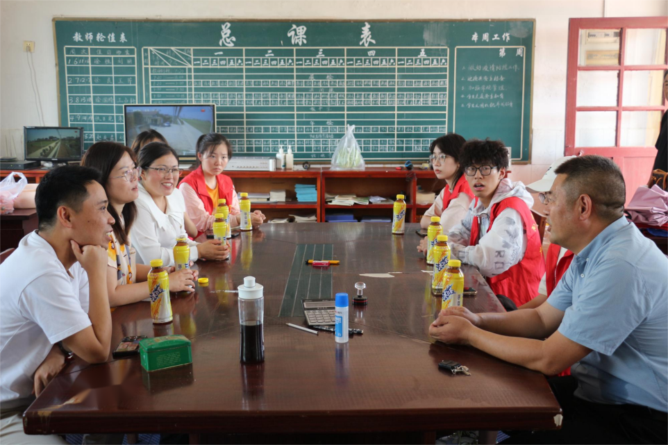 7月3日下午,实践团队来到灌云县下车镇柴市村石羊小学,与灌云县下车镇副镇长金立富、下车镇柴市村党支部书记韩丽华、下车镇柴市村石羊小学校长胡胜利展开座谈,详细了解当地基础教育发展情况。石羊小学作为下车镇仅存的两所村小之一,开设学前教育及小学一至六年级7个班级,共有专任教师15人,学生121人。近年来,学校在解决周边村落适龄儿童就近入学、解除外出务工人员后顾之忧等方便发挥重要作用,在刚刚结束的毕业班考试中取得优异成绩。但是学校也同时面临生源短缺、硬件不足、教师年龄偏大等问题。