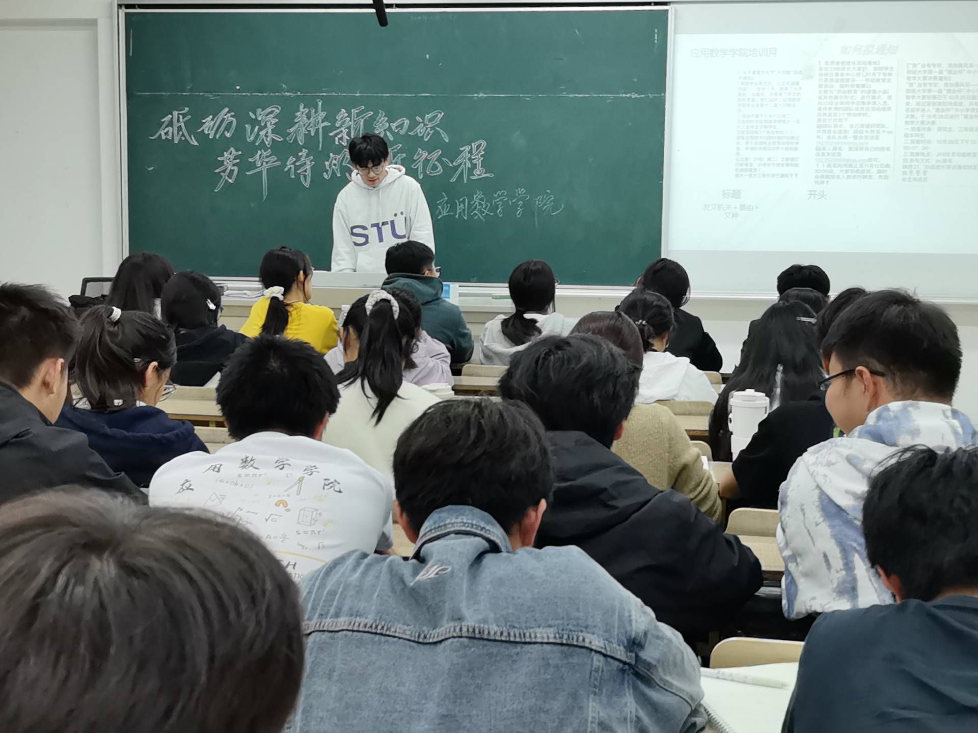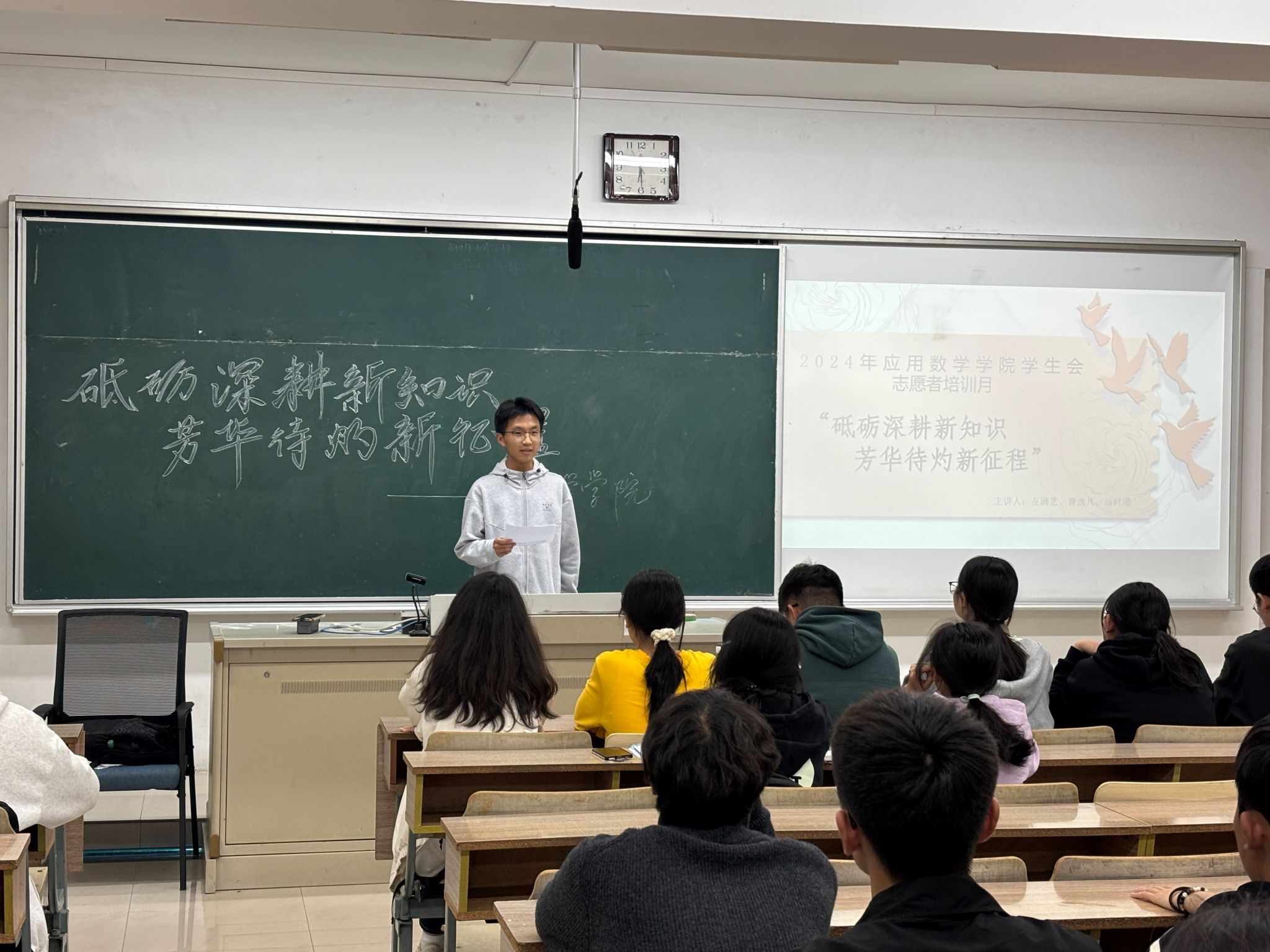 学生会于10月28日在仙林校区博文楼201教室举办了“砥砺深耕新知识,芳华待灼新征程”培训月活动。活动由院学生会综合事务中心志愿者方自然主持,综合事务中心负责人以及全体志愿者参加。