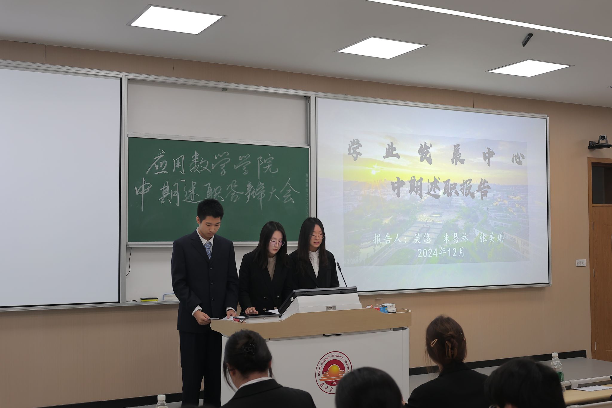 院学生会各中心依次进行述职答辩。媒体融创中心从新闻稿撰写、推送制作、摄影摄像、海报设计及其他工作五个维度进行了总结,清晰反映了中心工作成效。学业发展中心围绕日常事务、就业指导、数学文化节、学业帮扶四大板块展示成果,复盘工作亮点,剖析现存问题并给出解决方案。对外交流中心重点介绍了外联工作成果以及沙龙讲座举办、院服定制分发等方面的成绩。综合事务中心述职条理分明,详细罗列了学期内十五项工作成果。服务维权中心则从内部管理与外部服务两方面进行总结,凸显了内部团队磨合的进步以及在外部服务中的积极协作。素质拓展中心详细陈述了迎新活动、冬日暖心活动、运动会、新生杯等活动的组织成果与宝贵经验。