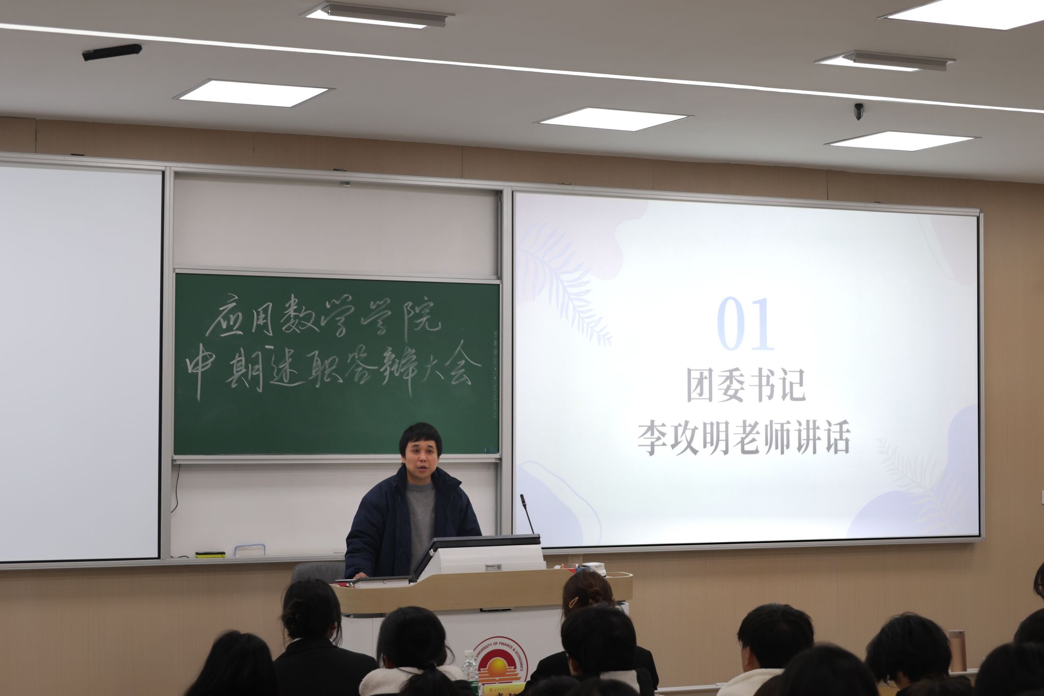 在仙林校区博观楼202室召开第二十一届学生会中期述职大会。出席此次会议的有院团委书记李攻明老师及院学生会主席团成员,大会由院学生会综合事务中心负责人左圆艺主持,全体院学生会成员参加。