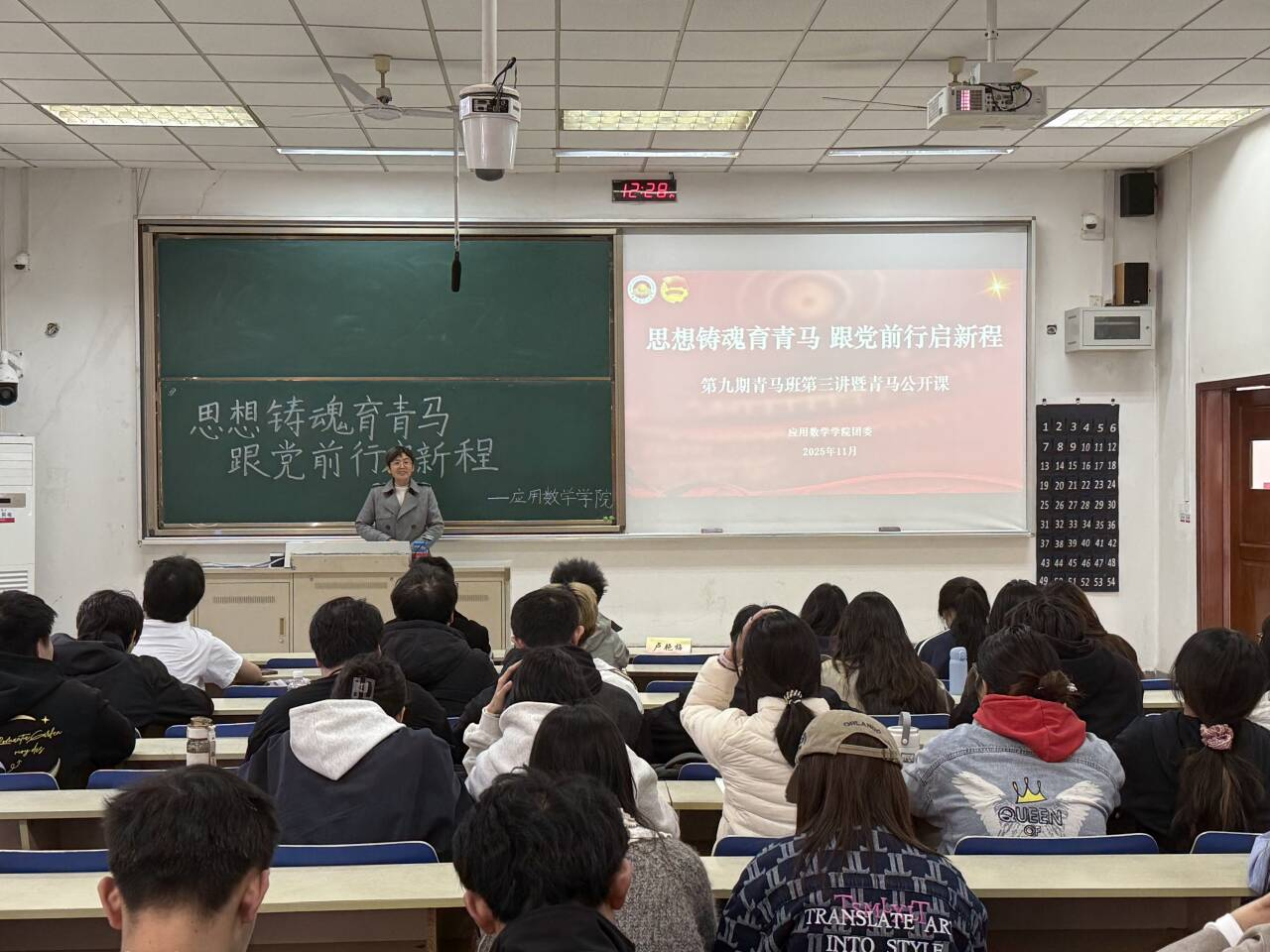 团委于11月13日中午在仙林校区德业楼101教室举办了第九期青马班第三讲暨青马公开课,本次活动以“思想铸魂育青马,跟党前行启新程”为主题,学院本科生党支部书记卢艳梅老师主讲,明星ai换脸