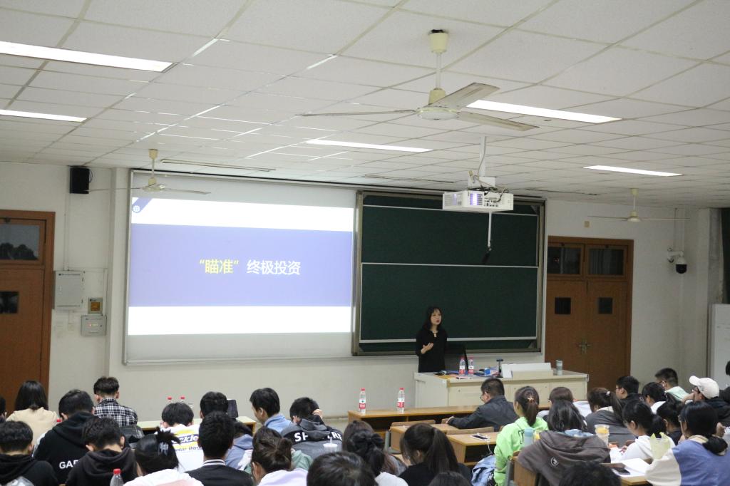 龚圆圆老师从锁定职业路径、积极开发自我、瞄准终极投资等三个方面展开分享。首先,她介绍了金融行业的各类岗位,并以支付宝对大数据的运用为例,说明数学知识对金融岗位的重要性。其次,她鼓励同学们在大学期间积极寻找自己喜欢的一个行业,努力探索行业方向,尝试了解行业内部框架,做好自我规划。最后,她介绍了目前金融行业的人才需求,鼓励同学们积极参加实践活动,在大学生活中应不断尝试,要勇于“试错”。