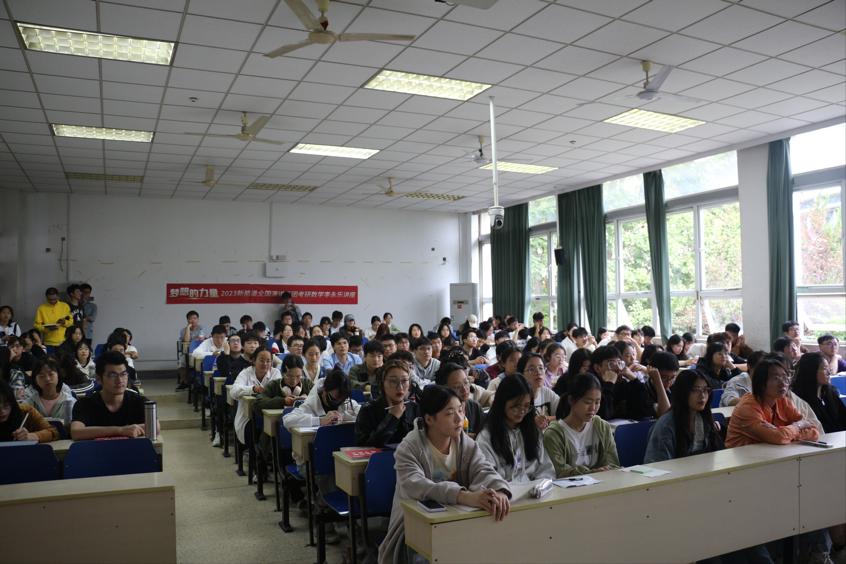 在仙林校区德业楼101教室举办考研数学复习技巧分享活动,活动由原清华大学应用数学系教授李永乐老师主持,2021、2020级同学参加。