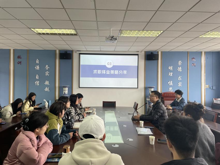 在仙林校区德业楼508会议室以线上线下相结合的方式召开2024届毕业生就业工作推进会。学院学工老师、全体毕业班学生参加会议。会议由院党委副书记孙晓飞主持。