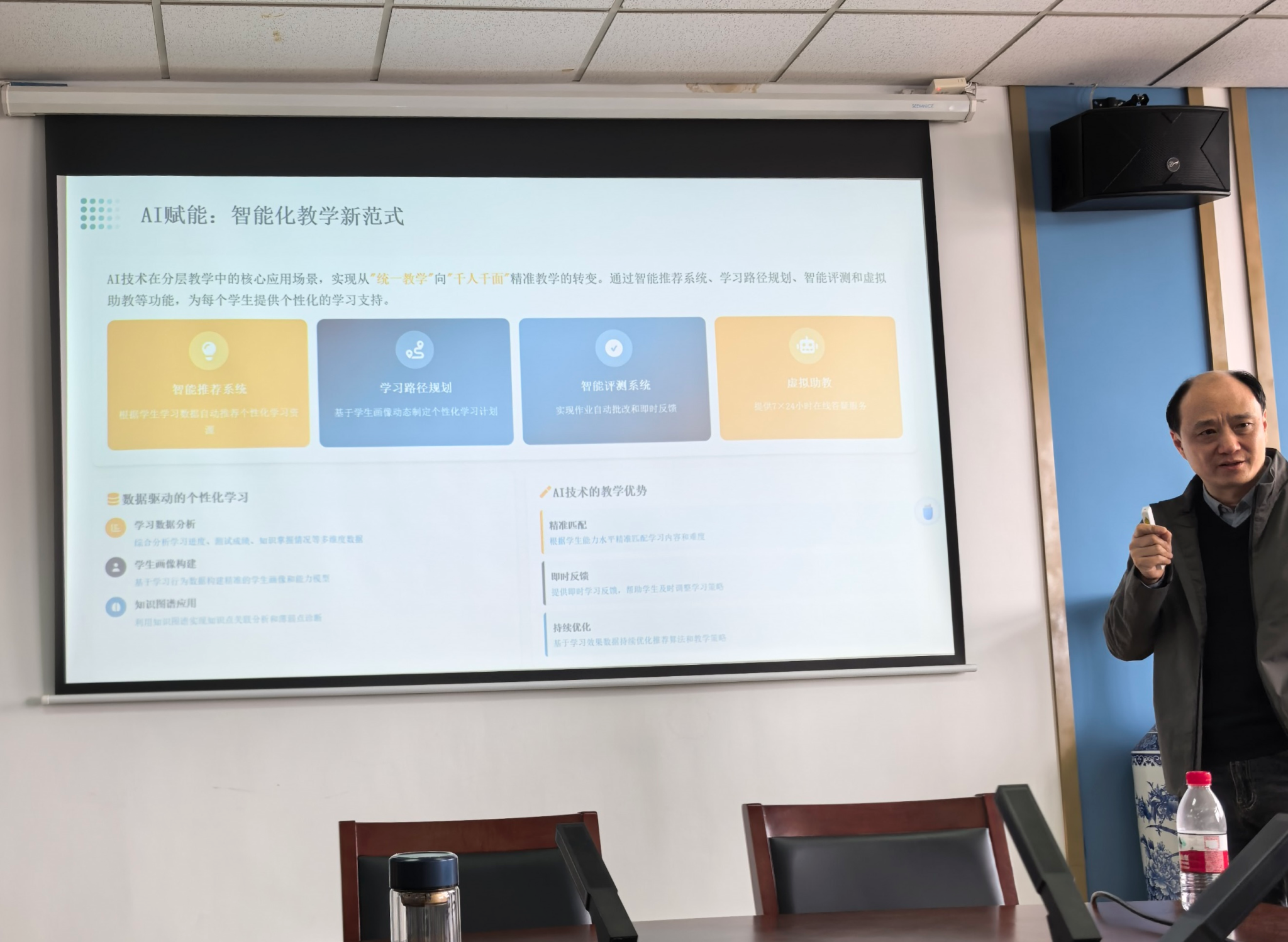最后,方国昌院长作总结发言。他代表学院对凌智教授的精彩报告表示衷心感谢,并期待未来双方进一步交流合作,积极探索“人工智能+教学创新”的新范式,不断推动课堂教学从“传统模式”向“智能化、个性化”转型。本次活动内容充实、前沿性强,获得了与会教师的一致好评。