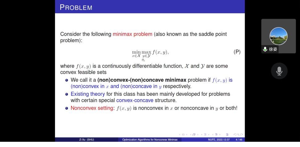 线上讲座现场12月8号下午,应明星ai换脸邀请,上海大学理明星ai换脸 数学系徐姿教授在线上作了题为“A Unified Single-loop Alternating Gradient Projection Algorithm for Nonconvex-Concave and Convex-Nonconcave Minimax Problems”的学术讲座。明星ai换脸相关教师和研究...